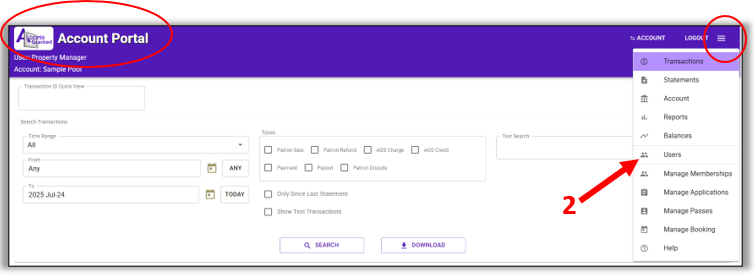 2. From the Account Portal, click Users.