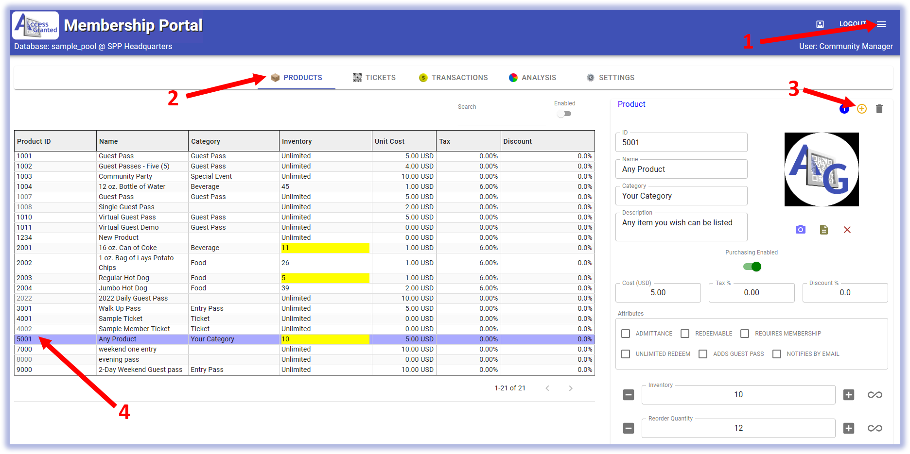 Add products your patrons will purchase at the concession stand.