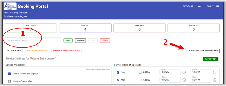 - Click Patron Service Booking Page.