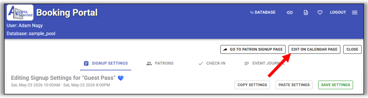 - Max Paton Signups: Set this to the maximum number guest passes per day. If you don't have a max, set it to a very high number.