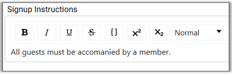 - Signup Instructions: Write any unique instructions. In this case, inform your members and guests they must stay together.