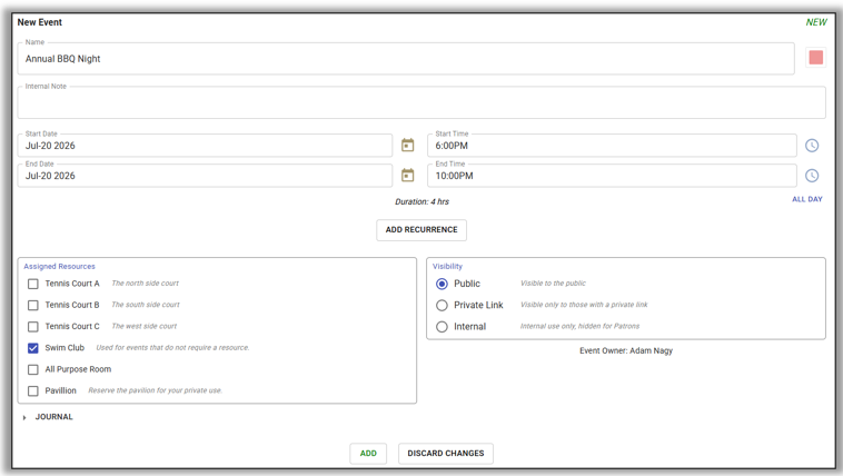 - Name: Annual BBQ Night. Use a descriptive name. Your members will know what they are signing up for.