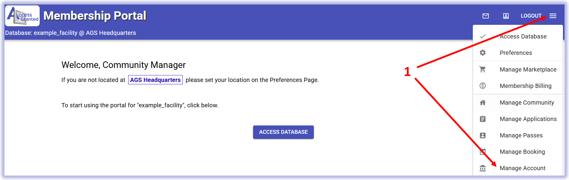 1) From any other Portal, click the Menu, then Manage Account.