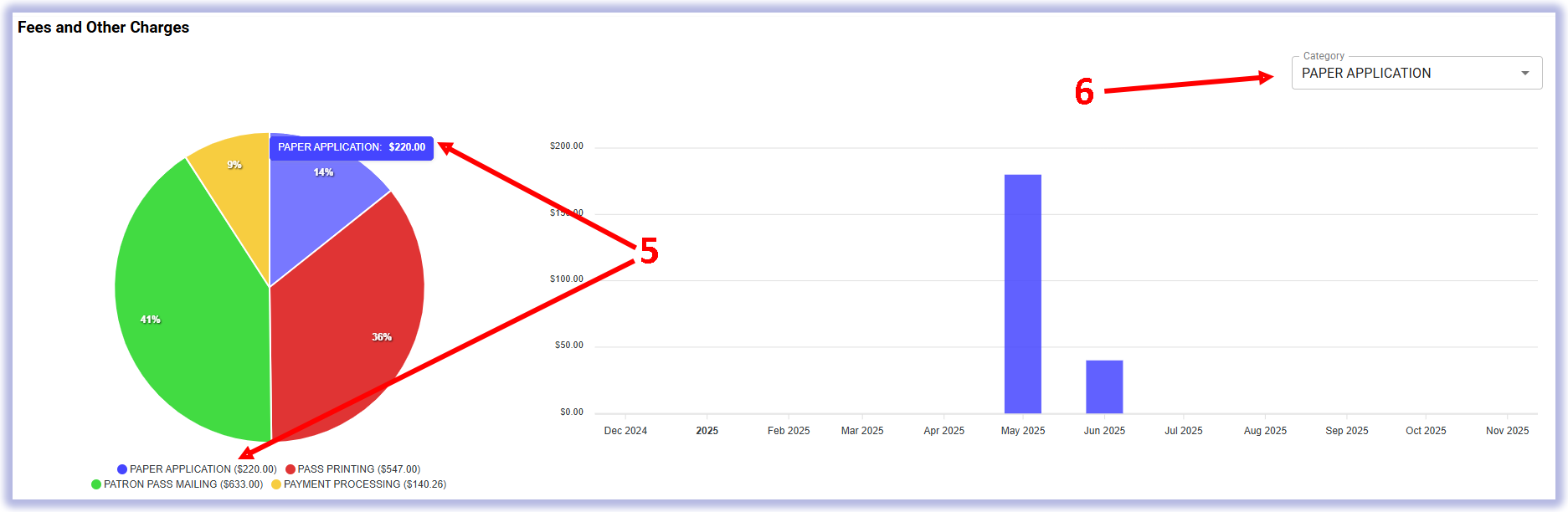 5) See the $ amount that was charged for Paper Applications. Dividing by $10 will give you the number of Paper Applications. E.g. $220 means 22 applications