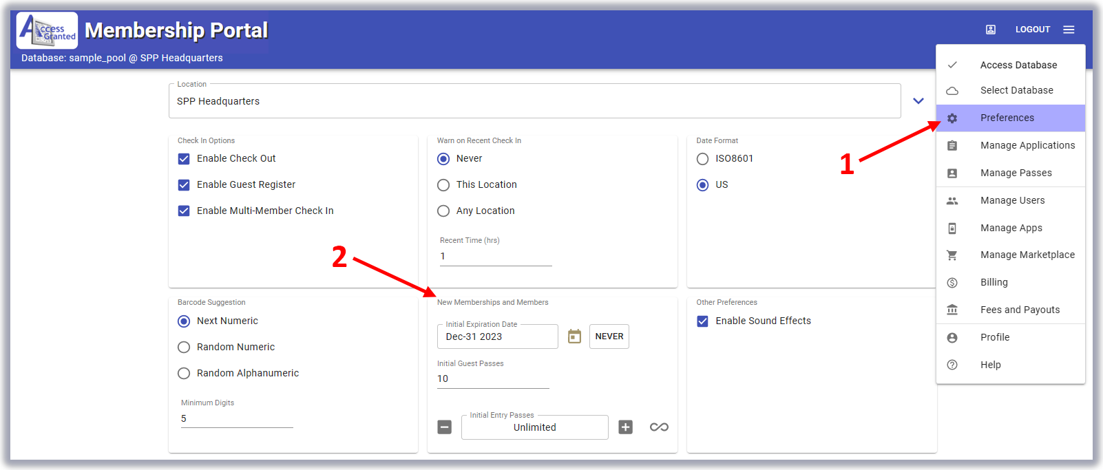 - Set your New Memberships and Members preferences