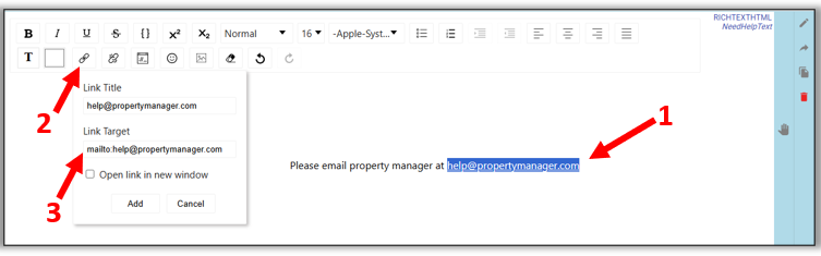 1. In any rich text field, highlight an email address.