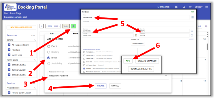 3. Select a Resource or Service to block time.