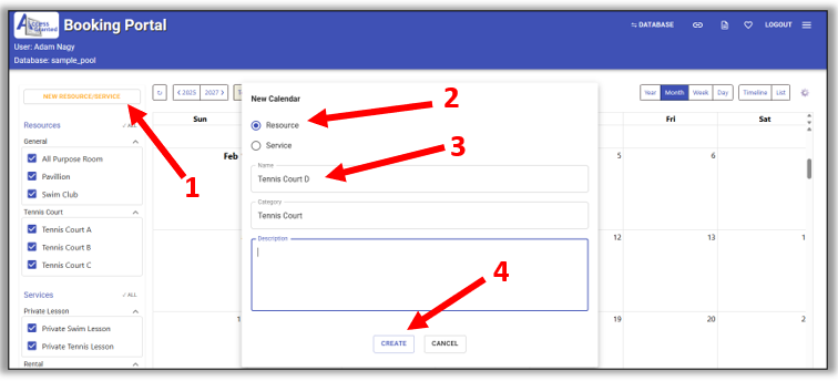 1. On the calendar page, click New Resource/Service.
