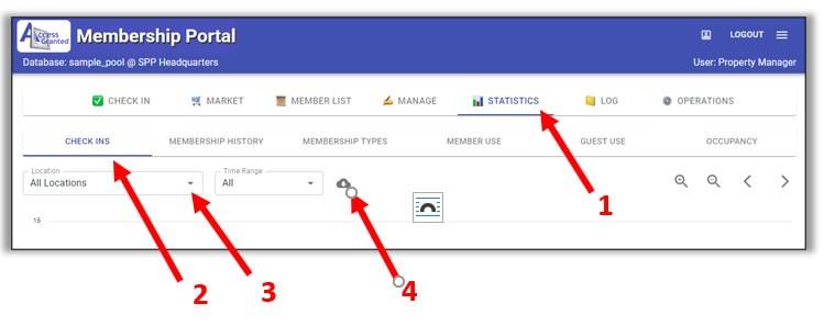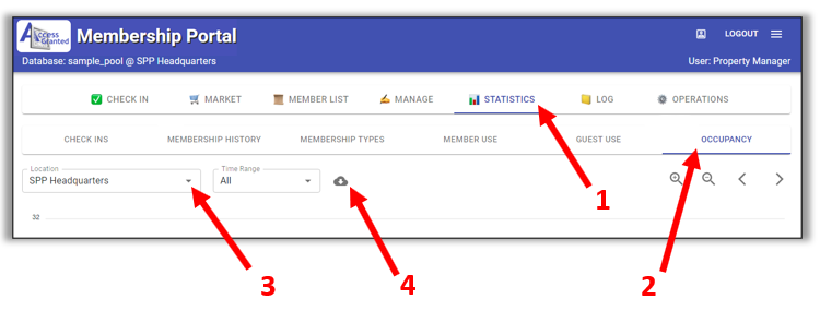 How to export the facility's statistics - check-ins & occupancy
