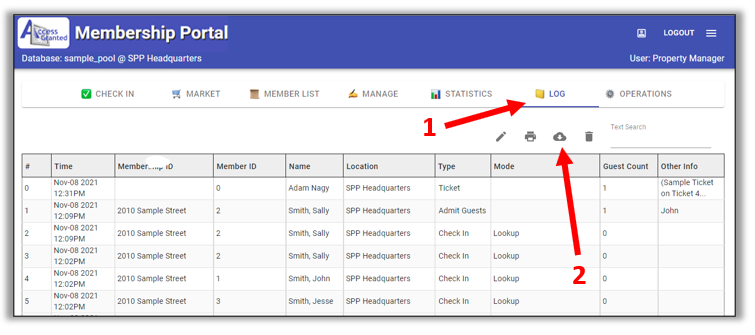 How to export the sign in sheets or log