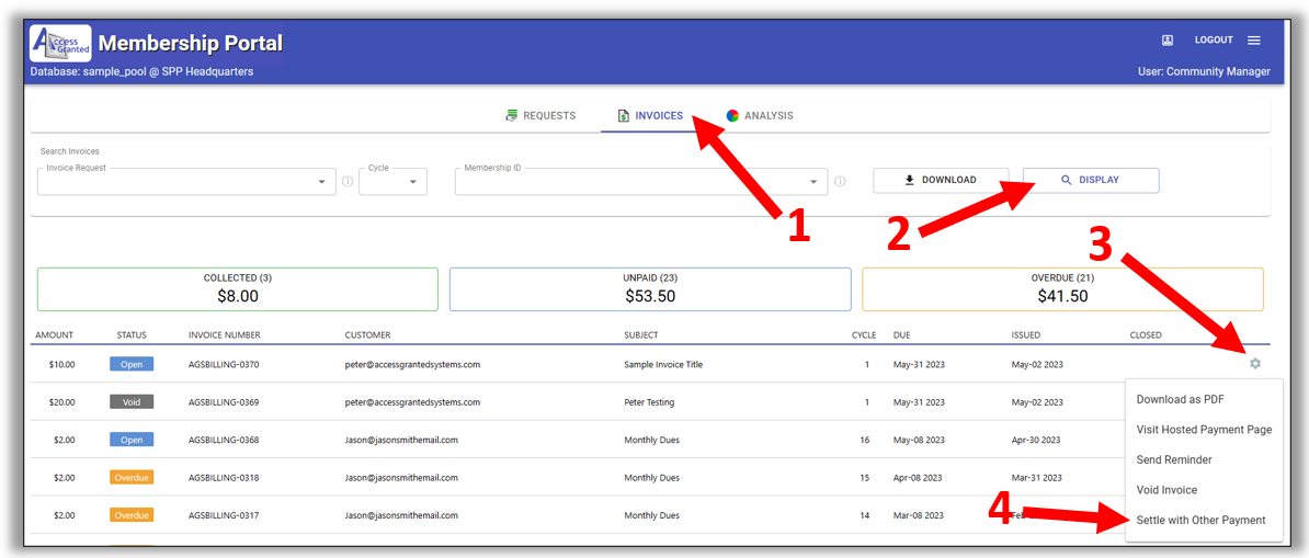 You may collect a payment outside of the software. An example is the member mails you a check. You'll want to mark the invoice as paid to trigger all the automatic actions. The software will mark the invoice's status as Settled.