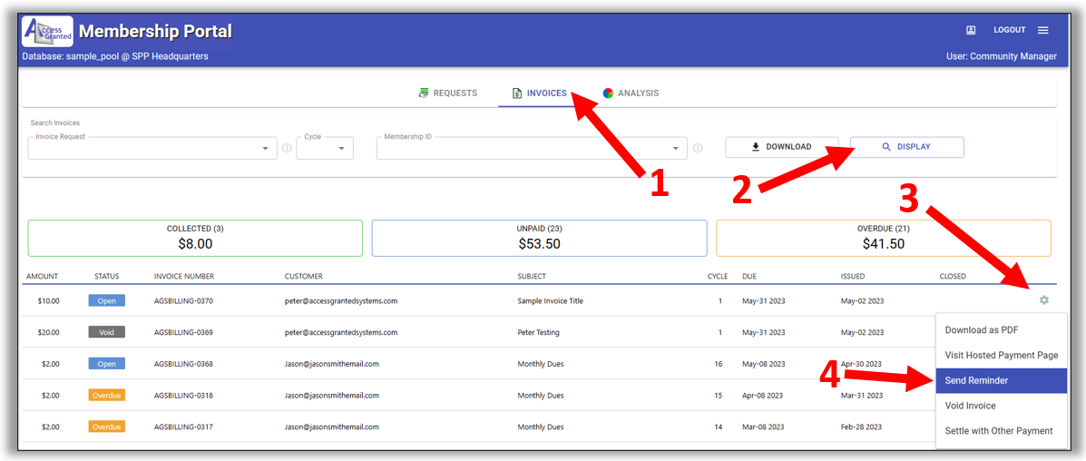 If a member does not pay an invoice. You can resend the invoice as many times as you need.