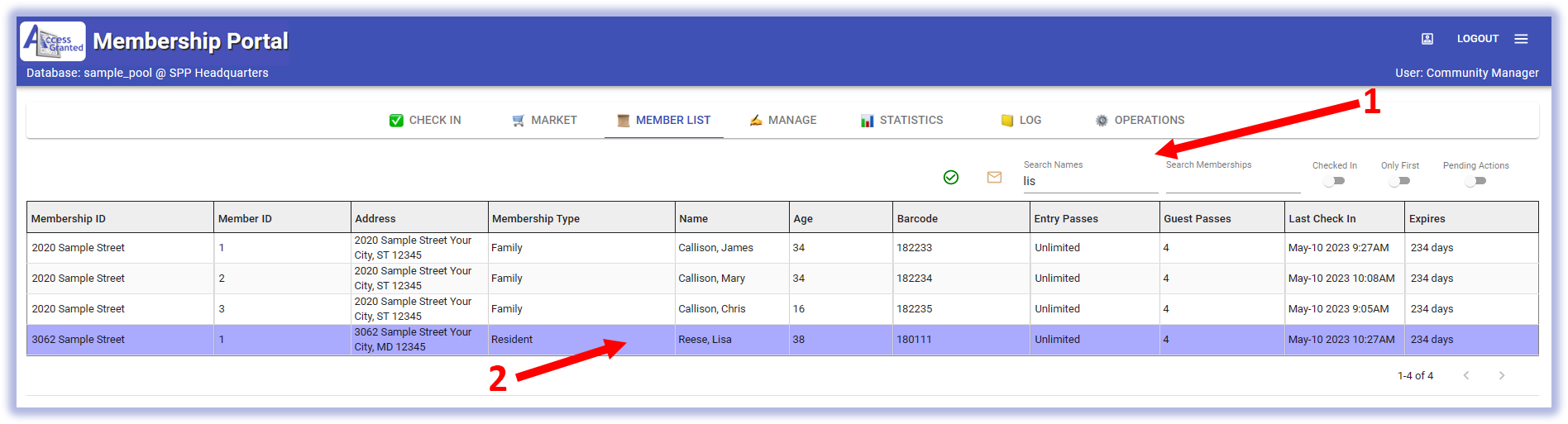- Go to the member's MANAGE page