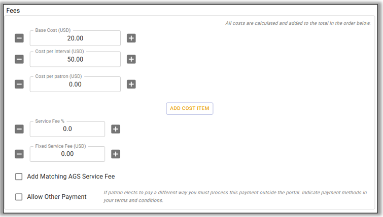 - Add Matching AGS Service Fee: Check this if you wish to match AGS's service fee. If a payment is collected via AGS, the patron will pay AGS's fees.