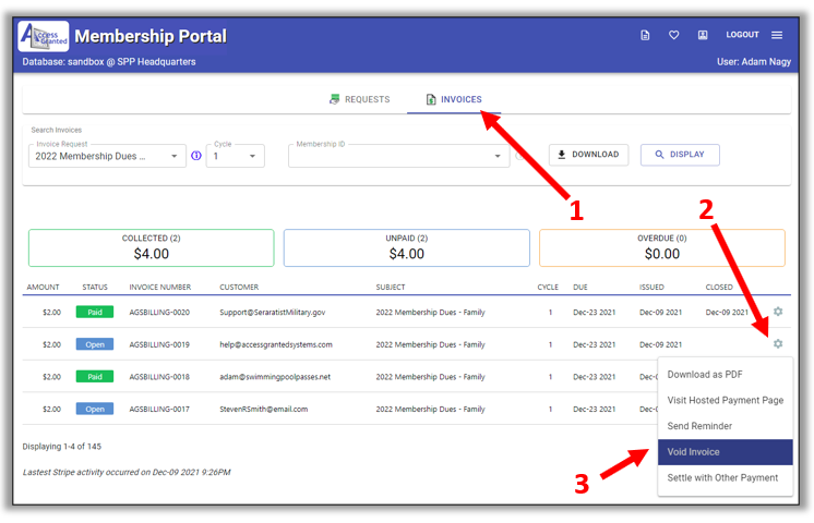 Voiding an invoice will close the invoice without collecting a payment or triggering any on-payment actions.