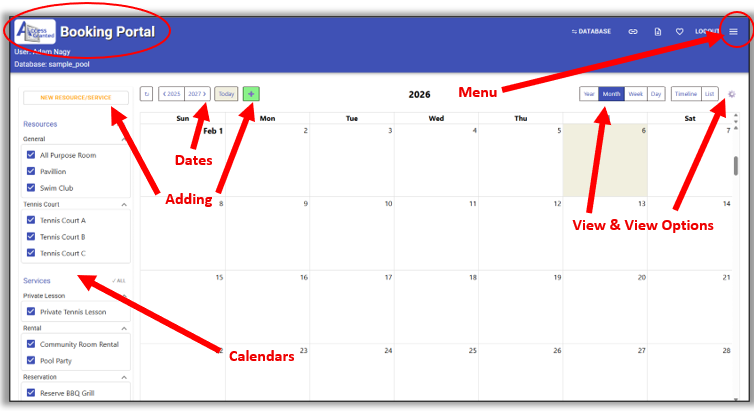Once at the Booking Portal. The Calendar is your homepage. It is a master calendar for your entire community.