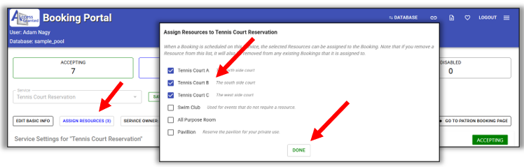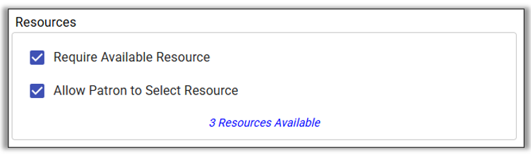 - Allow Patron to Select Resource: Checked because this will allow your member to select which of the 3 courts they want to reserve.